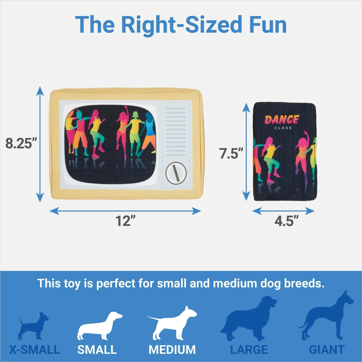 - TV and VHS plush dog toys include sewn-in squeakers to amp up the fun and keep your pup moving.