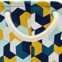 Frisco Round Collapsible Pet Toy Storage Bin, Yellow Geometric